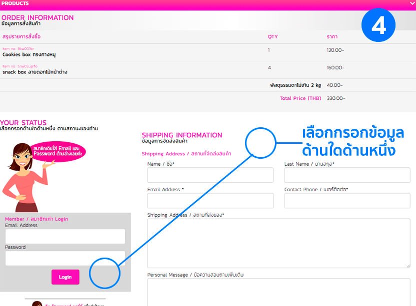 กรอกรายละเอียดชื่อ-ที่อยู่ ในการจัดส่ง