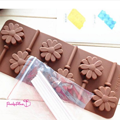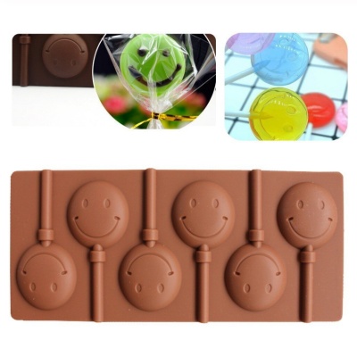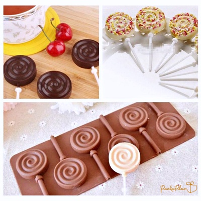 พิมพ์สำหรับทำ lolli pop ชอคโกแลต ทอฟฟี่ ใน 1 แผ่นมี 6 ช่อง พร้อมไม้ lollipop 6 แท่ง ขนาดเส้นผ่าศูนย์กลางแต่ละช่อง 4 cm (ขอสวงนสิทธิ์ คละสีแผ่นซิลิโคน)