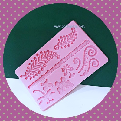 พิมพ์ Fondant / Gum Paste ใช้สำหรับตกแต่งเค้ก โดยการนำ น้ำตาล Fondant หรือ Gumpaste กรุลงในแผ่นพิมพ์ซิลิโคน แล้วกดลงในพิมพ์ เมื่อคลุมพิมพ์ทั้งหมดแล้ว สามารถปริ Fondant หรือ Gumpaste ออกจากแม่พิมพ์ได้ง่ายๆ น้ำตาลจะขึ้นรูปออกมาสวยงามตามแม่พิมพ์ (คละสีซิลิโคน)