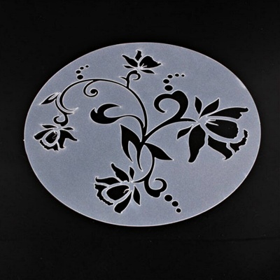 แผ่น stencil ทำจากพลาสติก PP หนา 0.04 cm ใช้สำหรับหรือโรย icing หรือผงโกโก้ ตกแต่งบนเค้ก่ให้สวยงาม ในแพคบรรจุ แผ่นขนาด 8 นิ้ว (20 cm) = 2 แผ่น , ขนาด 3 นิ้ว (8.2 cm) = 6 แผ่น รวม 8 แผ่นใน set