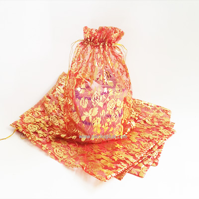 Fabric bag ถุงผ้าลายหัวใจ สามารถมองเห็นด้านในได้ สำหรับใส่ของขวัญเพิ่มความสวยงาม