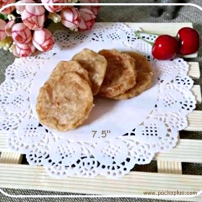 กระดาษดอลลี่สีขาว ทรงกลม สามารถใช้ตกแต่งกล่อง ถุง รองขนม เพื่อความสวยงาม ดูสะอาด
