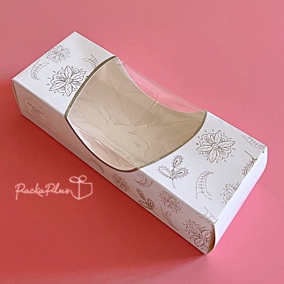 กล่องสำหรับบรรจุคัพเค้ก, บราวนี่, บัตเตอร์เค้ก, คุกกี้ หรือของฝากอื่นๆ พร้อมฐานกระดาษแข็งรองพื้น หูเกี่ยว 2 ข้าง หูหิ้วกลาง มีหน้าต่างสามารถโชว์ของภายในได้