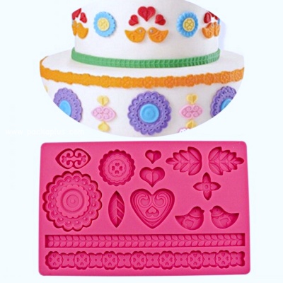 พิมพ์ Fondant / Gum Paste ใช้สำหรับตกแต่งเค้ก โดยการนำ น้ำตาล Fondant หรือ Gumpaste กรุลงในแผ่นพิมพ์ซิลิโคน แล้วกดลงในพิมพ์ เมื่อคลุมพิมพ์ทั้งหมดแล้ว สามารถปริ Fondant หรือ Gumpaste ออกจากแม่พิมพ์ได้ง่ายๆ น้ำตาลจะขึ้นรูปออกมาสวยงามตามแม่พิมพ์