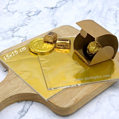 แผ่นฟอยล์ ใช้สำหรับห่อ ลูกกวาด ชอคโกแลต และขนมต่าง ๆ ขนาด 8*8 cm ในแพคบรรจุประมาณ 100 แผ่น