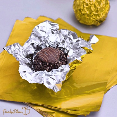 แผ่นฟอยล์ ใช้สำหรับห่อ ลูกกวาด ชอคโกแลต และขนมต่าง ๆ ขนาด 8*8 cm ในแพคบรรจุประมาณ 100 แผ่น