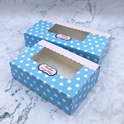 กล่องทรงบ้านลายดอกไม้ มีหน้าต่างสามารถเห็นภายในได้ สำหรับบรรจุคุกกี้ เค้ก ขนมต่างๆ หรือจะใช้ดัดแปลงไปใส่ของขวัญน่ารักๆ ต้องการใส่คัพเค้ก 2 ถ้วย (สามารถสั่งเพิ่มหลุมคัพเค้ก 2 หลุมได้)