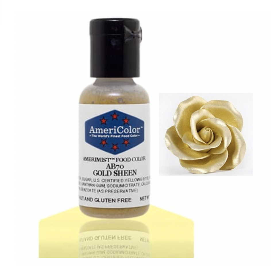 สีใช้สำหรับงาน airbrush ใช้ตกแต่งบนผิวงาน(ไม่ผสมลงในเนื้องาน) โทนสีแบบประกายวิ้งๆ เงางาม ใช้สำหรับงานตกแต่งลงสี Fondant & Gum paste Amerimist Sheen airbrush food colors create a shimmy, metallic sheen, plus they are 100% edible and food safe!