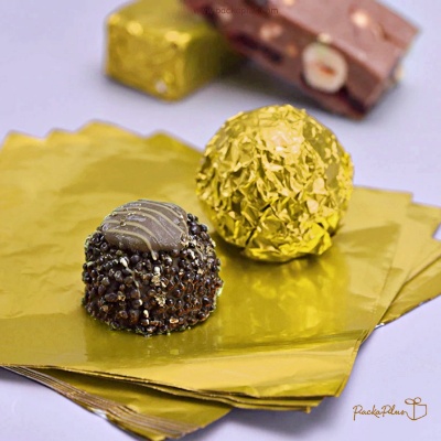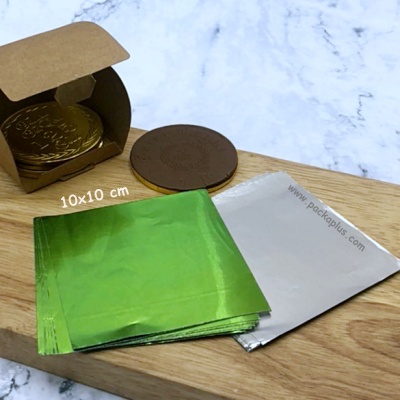 แผ่นฟอยด์ ขนาด 10x10 cm เนื้อฟอยล์เงาวาว ใช้สำหรับห่อ ทอฟฟี่ chocolate บราวนี่ ขนมต่าง ๆ ปากขวดเครื่องดื่ม และอื่นๆ