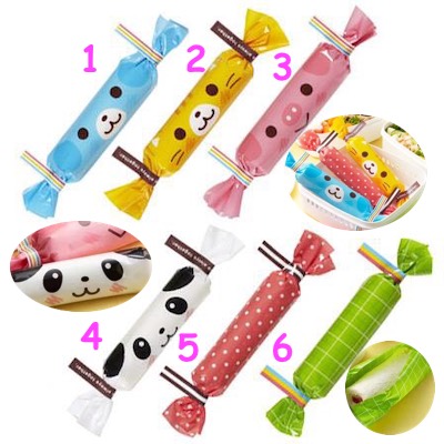 แผ่นพลาสติกลายน่ารักๆ สำหรับห่อแซนวิช ขนม อาหารต่างๆ หมายเหตุ: ในเซตไม่รวมลวดรัด