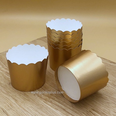 ถ้วยอบเค้ก กระดาษเนื้อหนา food grade สีเมทัลลิค คุณภาพดี เงาวาว มีฐานวางตั้ง สามารถเข้าเตาอบได้เลย ไม่ต้องใช้พิมพ์รองถ้วย - Bright Purple in metallic cup for cupcakes and muffins. It can be directly baked in the oven and served. Best quality food grade paper used