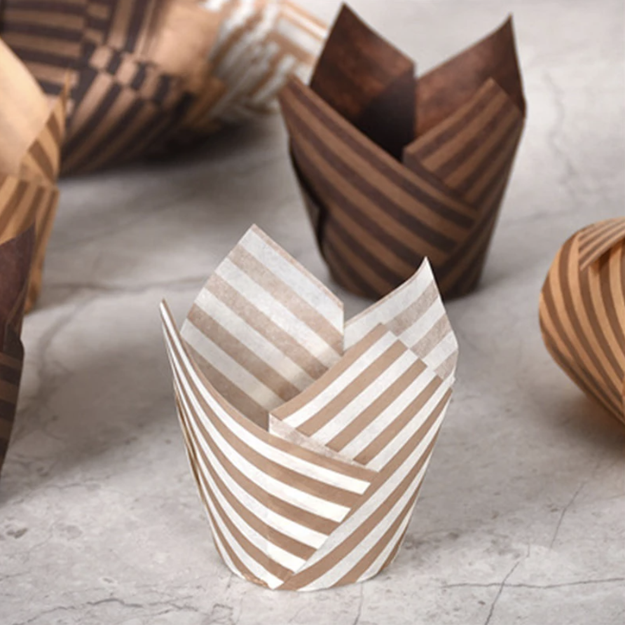 ถ้วยอบเค้ก ทรงหมวก วัสดุ: ทำจากกระดาษฟาง ธรรมชาติ เป็นมิตรต่อสิ่งแวดล้อม คุณสมบัติ: กระดาษเคลือบกันน้ำมันหรือเนยซืึม สามารถเข้าเตาอบได้ สำหรับใส่เค้กมัฟฟิน ขนาด: ฐาน 4.5cm สูง 5 cm ปีกหมวก 0.5 cm -- Natural Straw Baking Cup Paper Disposable, Eco-Friendly and Greaseproof (นน.104g)