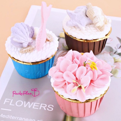 ถ้วยคัพเค้กฟอยล์แบบม้วนขอบ food grade กระดาษฟอยล์พรีเมี่ยม สีเมทัลลิคซ้อนทับหนาทั้งด้านในและด้านนอก คุณภาพดี เงาวาว สามารถเข้าเตาอบได้ เข้าช่อง freezer ได้ ไม่ต้องใช้พิมพ์รองถ้วย สามารถกันน้ำมันซึมได้ดี ฐาน 3.8 cm สูง 3 cm -- metallic foil cake cup , freezer-safe , oven-safe and grease-resistant coating นน.58g
