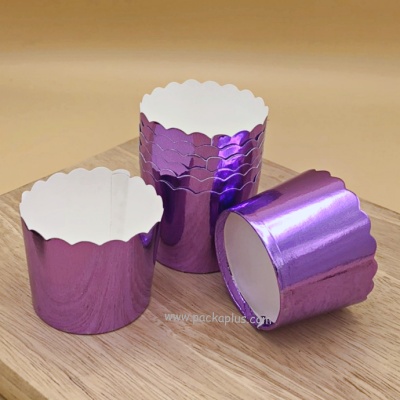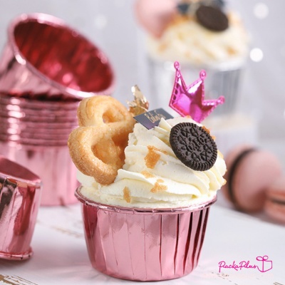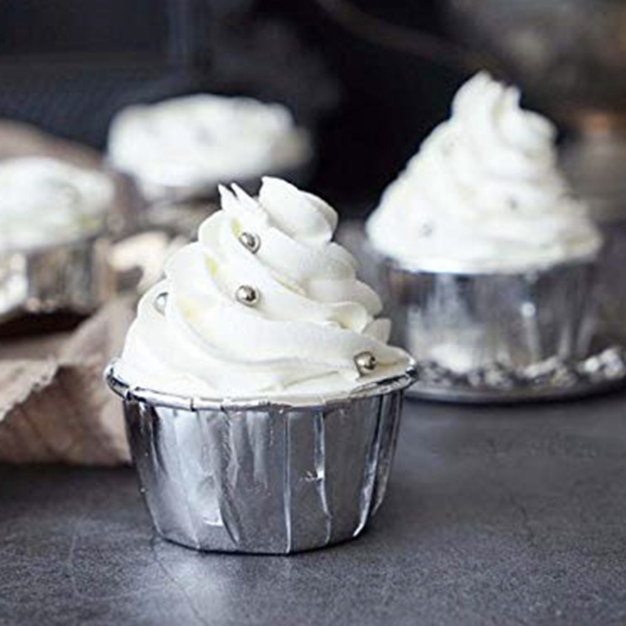 ถ้วยคัพเค้กฟอยล์แบบม้วนขอบ food grade กระดาษฟอยล์พรีเมี่ยม สีเมทัลลิคซ้อนทับหนาทั้งด้านในและด้านนอก คุณภาพดี เงาวาว สามารถเข้าเตาอบได้ เข้าช่อง freezer ได้ ไม่ต้องใช้พิมพ์รองถ้วย สามารถกันน้ำมันซึมได้ดี ฐาน 4.4 cm สูง 3.5 cm -- metallic foil cake cup , freezer-safe , oven-safe and grease-resistant coating (80g)