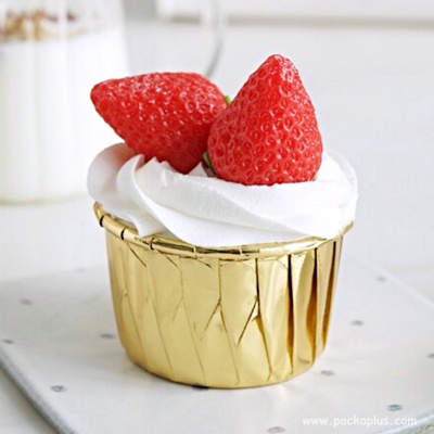 ถ้วยคัพเค้กฟอยล์แบบม้วนขอบ food grade กระดาษฟอยล์พรีเมี่ยม สีเมทัลลิคซ้อนทับหนาทั้งด้านในและด้านนอกซ้อนเพิ่มด้วยกระดาษสีแดงสวยงาม เงาวาว สามารถเข้าเตาอบได้ เข้าช่อง freezer ได้ ไม่ต้องใช้พิมพ์รองถ้วย สามารถกันน้ำมันซึมได้ดี ฐาน 4.4 cm สูง 3.5 cm -- metallic foil cake cup , freezer-safe , oven-safe and grease-resistant coating (58g)
