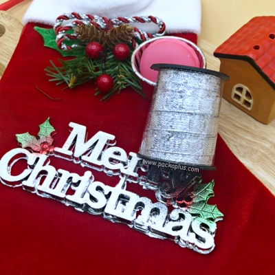 ริบบิ้นผ้า XMAS Leaves สีแดง