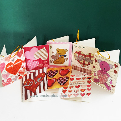 ริบบิ้นผ้า ลายหัวใจ I love you สำหรับตกแต่งการ์ด ผูกกล่อง ถุง package ต่างๆ สวยงาม