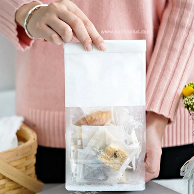 ถุงขนมปังสีขาว (ขนาดใหญ่) หน้าต่าง พร้อมลวดปิดปากถุงในตัว ขนาด 22 cm ยาว 28 cmหนา 11.5 cm