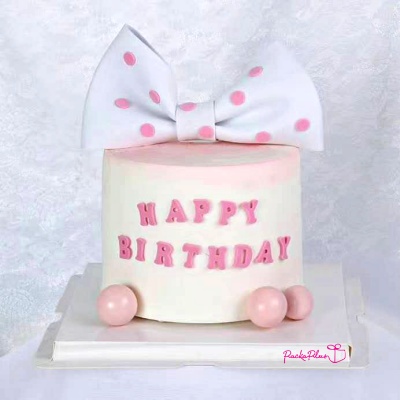 ป้ายปักเค้ก ลายจุด Big Bow - Pink