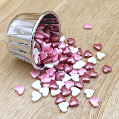 น้ำตาลรูปหัวใจ สำหรับตกแต่ง เค้ก คัพเค้ก ขนมต่างๆ Edible Metallic Heart Glitter Sprinkles -- to decorate your cookies, cakes, cupcakes and other baked goods บรรจุขนาด 1 g ประมาณ 1000 pcs
