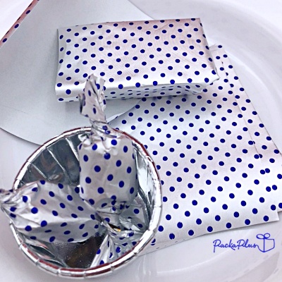 Embossing Aluminium foil+ paper แผ่นฟอยล์ 2 ด้าน -- ด้านหน้าเป็นเนื้อฟอยล์พรีเมี่ยม เนื้อหนามีลายนูนในตัว สีคลาสิคกึ่งด้านกึ่งเงา ด้านหลังซับซ้อนกระดาษที่มีลายนูนแบบด้านหน้า คุณภาพสูง food grade ใช้สำหรับห่อ chocolate bar, powerball, energy bar, หมากฝรั่ง, บราวนี่ และ ขนมอื่นๆ ช่วยเพิ่มประสิทธิภาพในการเก็บรักษา และเพิ่มมูลค่าสินค้า สวยหรูดูดีมาก