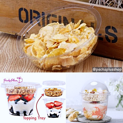 ถาดพลาสติก ทรงกลม สำหร้บใส่ topping แยกในถ้วยอาหาร เครื่องดื่ม สามารถใช้กับถ้วยปากกลมขนาดเส้นผ่าศูนย์กลาง 9.5 cm บรรจุ แพคละ 20 ชิ้น *** ขนาดถาดโดยประมาณ ฐานถาด 7 cm ปากบน 9 cm สูง 2.5 cm