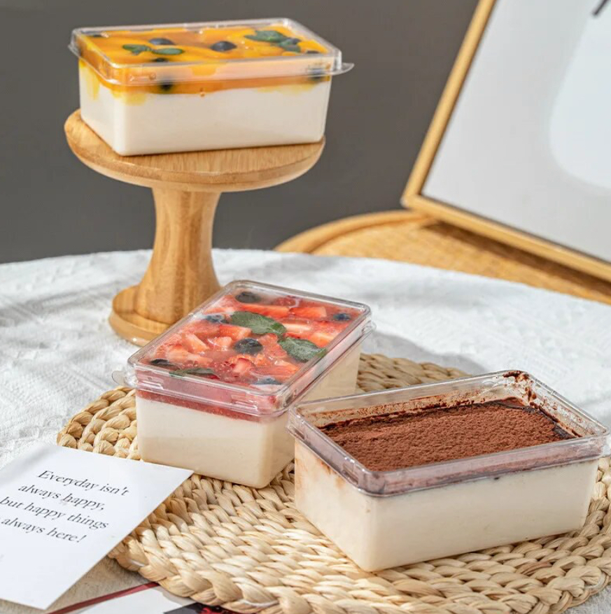 กล่องเค้กมินิ สีเหลืองพาสเทล พลาสติกใส