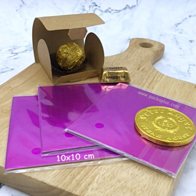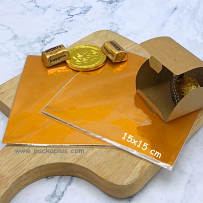 Aluminum Foil Chocolate / Candy Wrapper แผ่นอลูมินเนียมฟอยล์ ขนาด 20x20 cm เนื้อฟอยล์เงาวาว ใช้สำหรับห่อ ทอฟฟี่ chocolate บราวนี่ ขนมต่าง ๆ หรือใช้พันตกแต่ง ปากขวดเครื่องดื่ม ของชำร่วย และอื่นๆ 1 แพค บรรจุ 95-100 แผ่น นน 80g