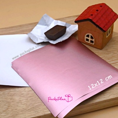 Aluminium foil+ paper แผ่นฟอยล์ 2 ด้าน -- ด้านหน้าเป็นเนื้อฟอยล์พรีเมี่ยม ผิวนูนมี texture classic color tone กึ่งด้านกึ่งเงา ด้านหลังซับซ้อนกระดาษสีขาวลายนูนเหมือนด้านหน้า, food grade ใช้สำหรับห่อ chocolate bar, powerball, energy bar, หมากฝรั่ง, บราวนี่ และ ขนมอื่นๆ