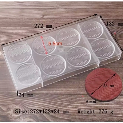พิมพ์ชอคโกแลต แผ่นกลมมีลายในตัว Chocolate แผ่นกลม Chocolate size 5.3x 0.4 cm, นน./ชิ้น 11g/pc Total 8 pcs (วัสดุ: AS) food grade ทนทาน พลาสติกคุณภาพสูง ใช้ซ้ำได้ คุ้มค่ามาก