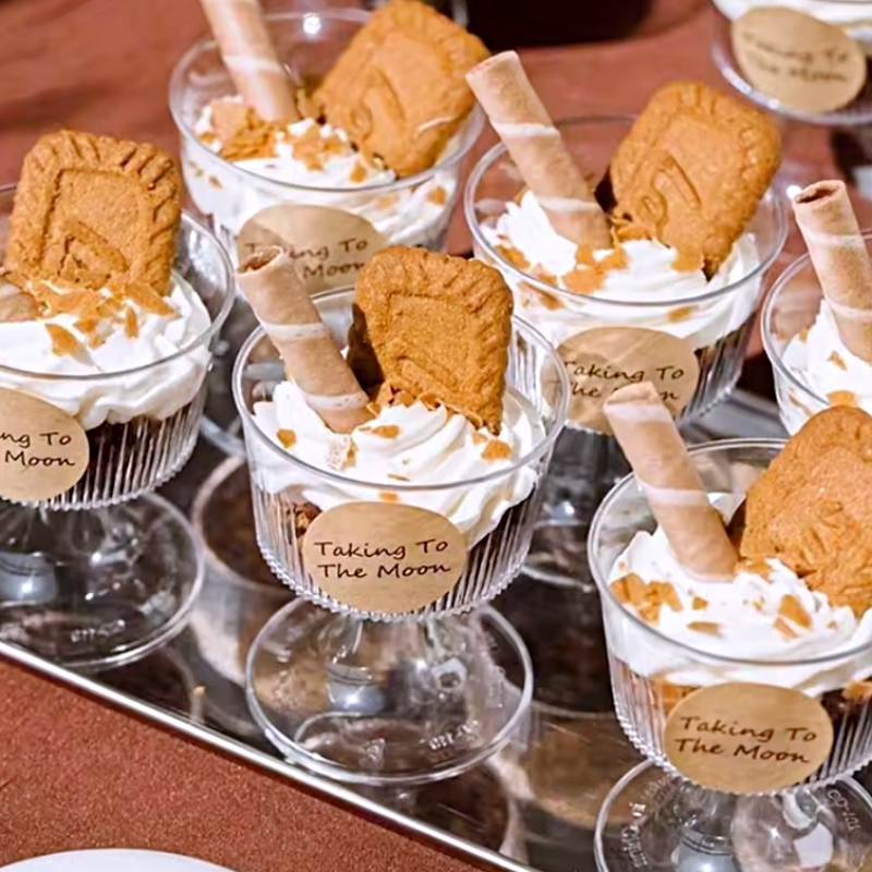 ถ้วยพลาติกใสแบบแข็งใส มีลายนูนในตัว มีขาตั้งสูง : food grade : เหมาะสำหรับ ชอคโกแลตมูสเค้ก ชีสพายหน้าต่างๆ เจลลี่ พุดดิ้ง วุ้นฯลฯ ขนาดเหมาะใช้ในงานเลี้ยง ค๊อกเทล และ ปาร์ตี้ต่างๆ หรือจะใช้เป็นกล่องใส่ของชำร่วย กล่องของชวัญชื้่นเล็กๆผูกริบบิ้นน่ารักๆ ดูน่ารักดี สวยงามมากๆ