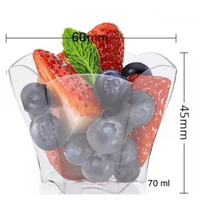 ถ้วยมูสพลาสติกแข็ง ไม่มีฝา ขอบหยัก ทรงดอกไม้ พลาสติก PS food grade
