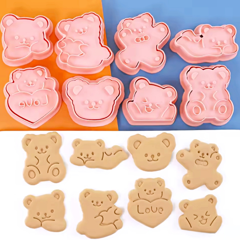 เซ็ต พิมพ์กดคุกกี้ น้องหมี 8 แบบ น่ารักทุกแบบ Cookie Cutter Set 8 pcs วัสดุ พลาสติก สีชมพู ขนาดโดยประมาณ เฉลี่ย 5-6 cm สำหรับใช้เป็นพิมพ์กดคุกกี้