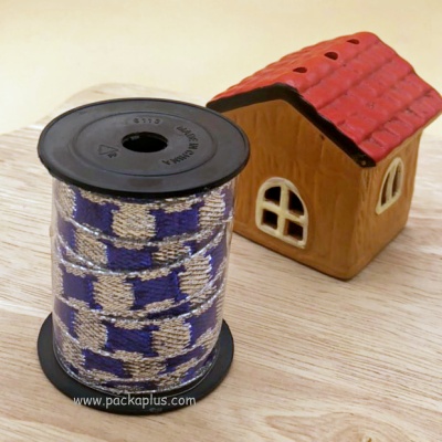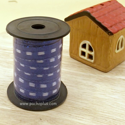 ริบบิ้นผ้าทอลายสลับสีฟ้าขาว