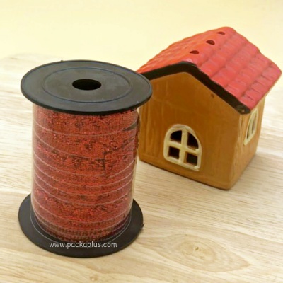 ริบบิ้นผ้าทอลาย พื้นแดงลายในตัว