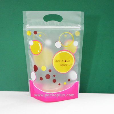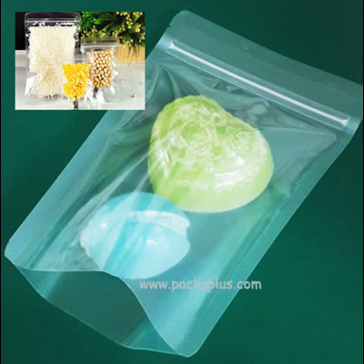 ถุง Ziplock มีฐานตั้งได้ ปิดปากถุงแน่นสนิท เจาะหน้าต่าง สูง 6 cm ด้านเดียว ด้านในถุงเคลือบมัน ไม่ทำให้เนยจากคุ๊กกี้เลอะซึมถุง สามารถนำไปใส่คุกกี้, popcorn หรือถั่วทอดต่างๆ ได้ดี