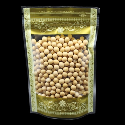 ถุงใส่คุกกี้ มีฐานตั้่งได้ ด้านหน้าพลาสติกใส ไม่มีลาย สามารถมองเห็นขนมภายใน พื้นหลังสี silver เนื้อฟอยด์ มี ziplock ปิดปากถุงขนมแน่น ใส่คุกกี้ได้ ประมาณ 200-250 g